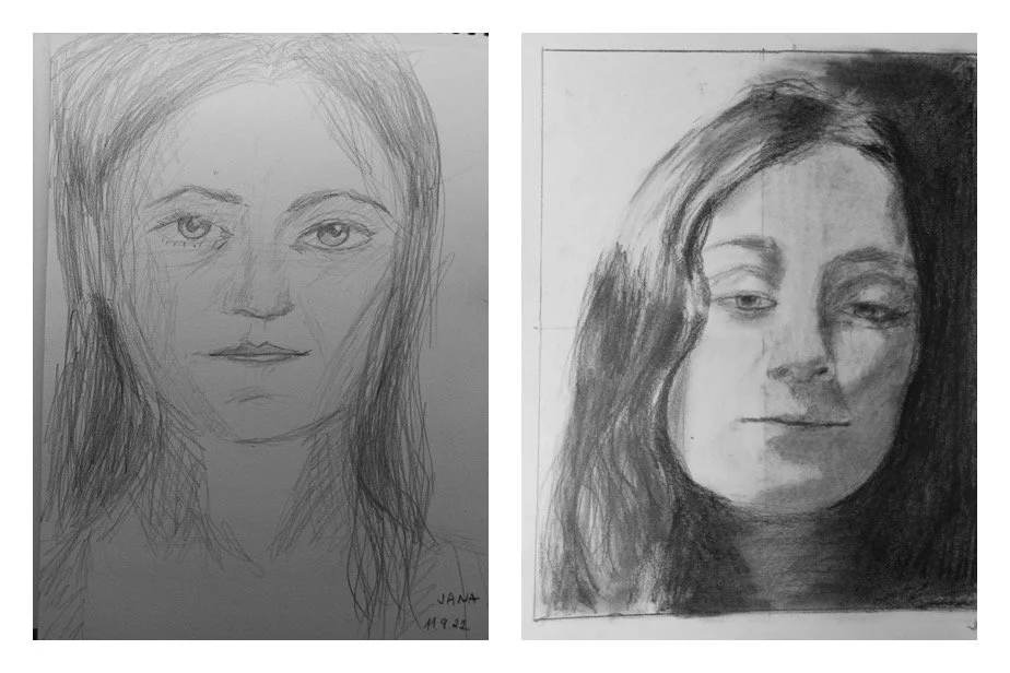 Recent Virtual Workshop Students’ Before and After Self-Portraits