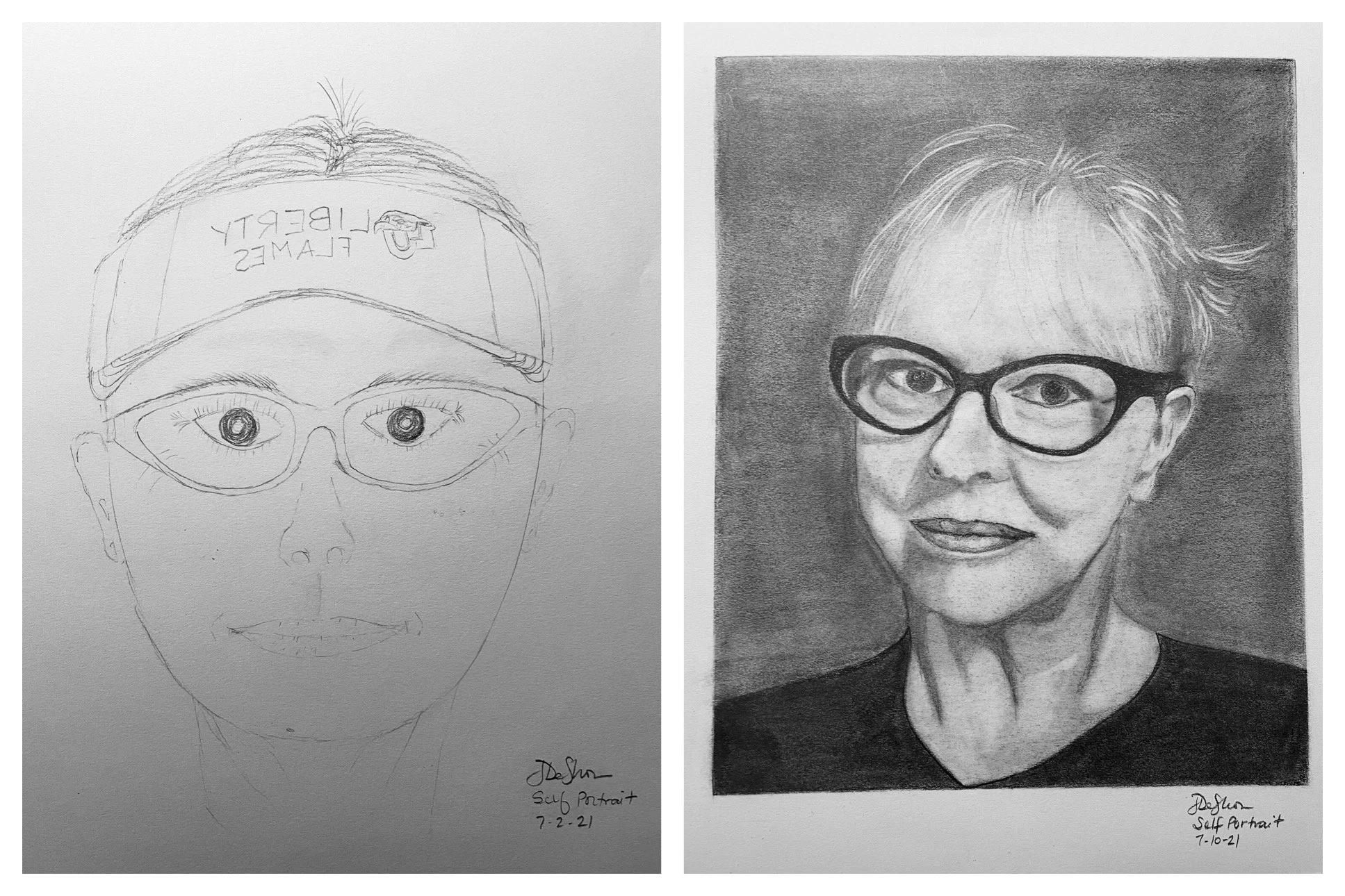 Former Virtual Workshop Students’ Before and After Self-Portraits